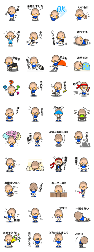 坊主の男の子のかわいいスタンプです。シたから より発売