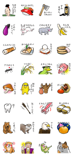大人の和風ダジャレ~粋で面白い筆絵 スタンプ画像一覧