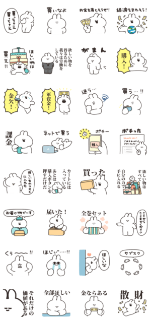 買い物するうさちゃん スタンプ画像一覧
