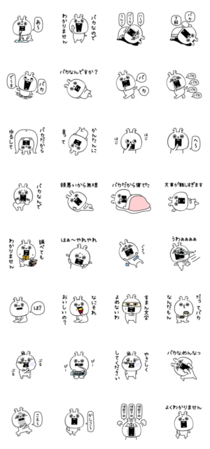 ピタうさぎバカの返信 スタンプに書いてある文字一覧