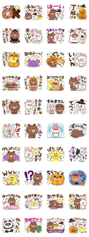 毎日がハロウィン気分♪yahoのふんわりテイストが秋色で大人可愛い♡BROWN & FRIENDSキャラ盛り沢山な毎日使えるスタンプです。