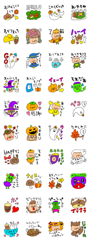 秋とハロウィンのスタンプ。riekim より発売