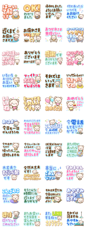 しろくまたん 丁寧な長文 スタンプに書いてある文字一覧