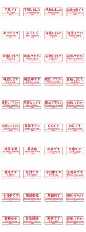 自分の名前をカスタムしてハンコ,判子で相手に敬語で連絡,返信.毎日,日常の仕事(ビジネス)の効率化!英語も兼用!シンプルで省スペース版!春夏秋冬いつでも使える.10文字.