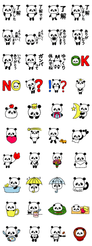 パンダのいろいろな表現ができるスタンプです。種類が豊富で使いやすいですね。