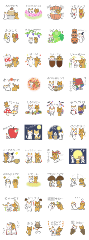 ふんわり シロちゃん×トラちゃんの秋 スタンプ画像一覧