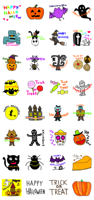 ハロウィンスタンプ#ハロウィン#カボチャ#ネコ#ドラキュラ#フランケンシュタイン#お菓子#コウモリ#クモの巣#骸骨yunyun より発売