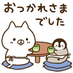 ねことペンギンの文字入りスタンプです。会話になじむ使いやすいスタンプです。