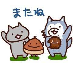 栗、どんぐりなど秋とネコちゃんです。ハロウィーンのカボチャ、オオカミもいるよ。ムラコシ より発売