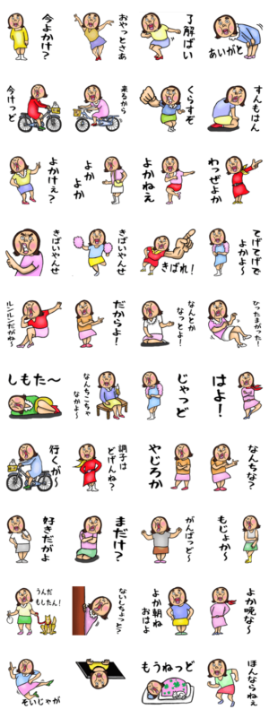 キュートなおブスちゃんが鹿児島県の方言、鹿児島弁を喋ります。愛嬌があるおブスのスタンプです。Brody Machine より発売