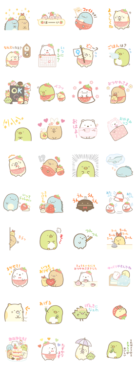 すみっコぐらしの家族で使えるスタンプ第3弾が登場!いちごのエプロンやぼうしをかぶったすみっコたちがかわいくて、家族のトークがもっと楽しくなりそう♪
