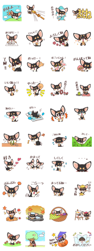 かわいいチワワ(ブラックタン)のスタンプを日常でよく使う言葉で集めました。上司やお客様など目上の方々にも使いやすいスタンプです。
