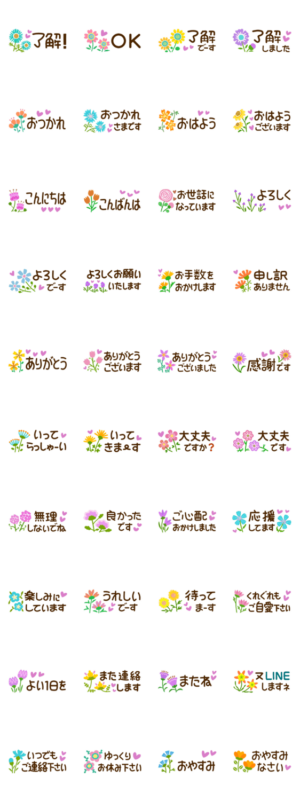 かわいいお花とハートの省スペースの挨拶セット(敬語もございます)
