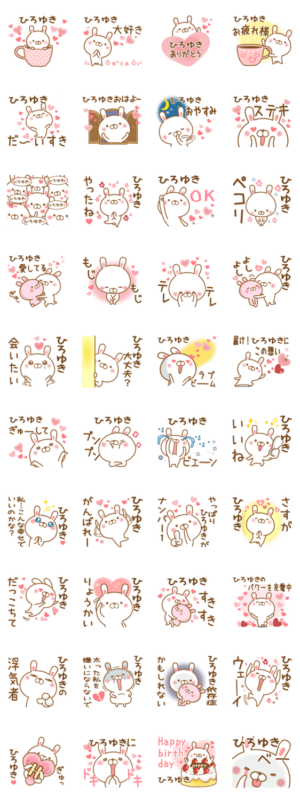 大好きなひろゆきに送るらぶらぶスタンプ。博之,裕之,浩之,弘之,宏之,博行,寛之,博幸,啓之,洋之,大志,浩行,裕行,敬之,宏幸,洋行,弘幸,ヒロユキ,浩幸,広之,ヒロユキなどしん より発売