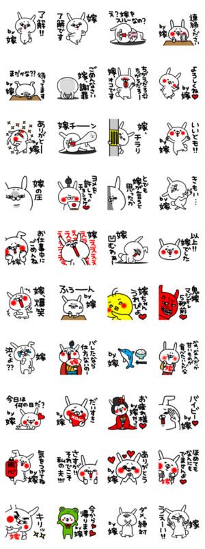 全国の「おヨメさん」専用スタンプ。かわいいウサギが「よめ」の気持ちを代弁。だんなさんへの連絡用。