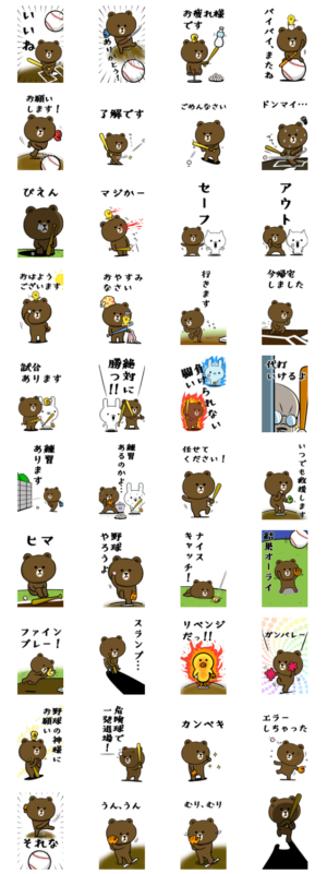 BROWN & FRIENDS が野球.ベースボール好きの為のスタンプに☆いつでもどこでも誰にでも使える.使いやすい.試合.練習のお誘いや日常の挨拶.応援.☆ノンノノン作