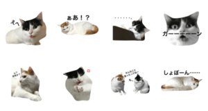 我が家のねこ、茶白のサンくんと黒白のぺろちゃん。親バカを拗らせスタンプ完成。自分で使う(買う)ため販売状態にしていますが8個で120円は高いので買わなくていいですwきなことあんこ より発売