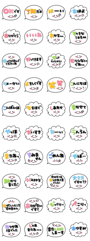 シンプルで可愛いふきだし♡男女問わず毎日使いやすいスタンプです。 よく使われる日常言葉を集めました。 デカ文字BIG/大人可愛い/毎日使う敬語/かわいい/家族/連絡用ちゃぴ より発売
