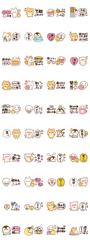 ふきだしウニフラ色々mix♡棒人間、ぺんぺん、ほいっぷ、豆柴日和、ねこにゃん、ぽこちゃんが大集合♪よく使う言葉・敬語がいっぱい!犬・猫・うさぎ・ペンギンぴよたぬき より発売
