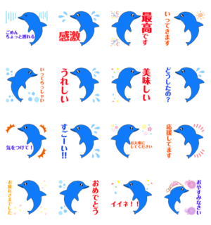 イルカ かわいい ごめん ちょっと遅れる 最高 いってきます いってらっしゃい うれしい どうしたの 気をつけて すごーい お大事に お疲れさま おめでとう おやすみ 他