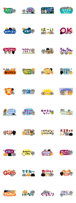 ちびねこイッパイのスタンプ、省スペースバージョンです。 会話の邪魔をしない、約半分サイズのスタンプです。 日常会話に使いやすい言葉いろいろ、敬語も入っています。KAKKOBOX より発売