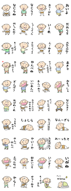 新潟弁のちっちゃいおっさんのスタンプです。Brody Machine より発売