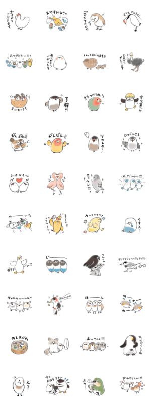 いろんな鳥さんたちの日常スタンプです。ぶんちょも時々出てきます。ゆひろ より発売