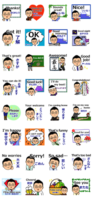 笑顔のサラリーマン4 英語と日本語 スタンプ画像一覧