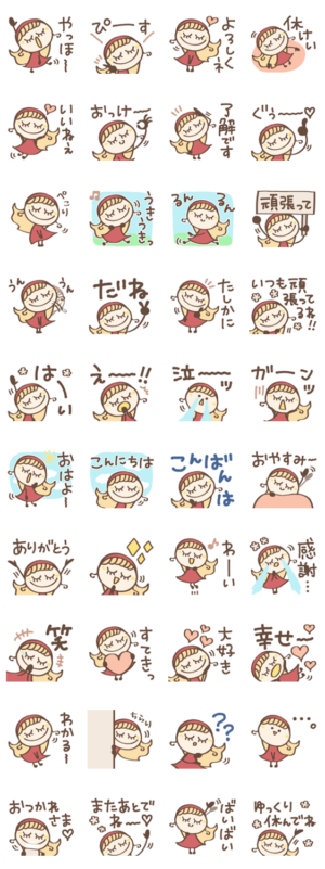 赤ワンピース、赤カチューシャの女の子♪毎日使えるフレーズを詰め込んだ無難なスタンプです♪小さな幸せ/感謝あさごぱん より発売