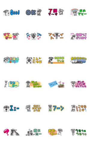 省スペースで動き回るシュナウザー犬のスタンプです。わんこ好きな方々に使っていただけたら嬉しいです。