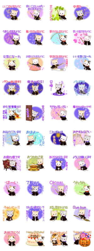 シルバニアファミリーのような可愛い猫のスタンプ!ハロウィンの画像も可愛い(❁´ω`❁)