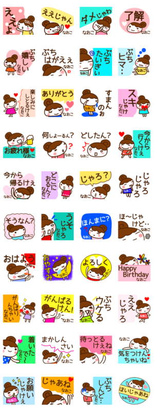 【なおこ】毎日使える広島弁スタンプ スタンプ画像一覧