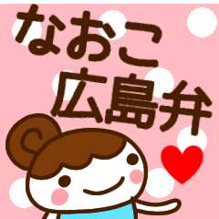 名前スタンプ、方言、広島、広島弁、なおこ、ナオコ、直子、尚子、奈央子、奈保子、奈緒子、菜穂子、挨拶、気持ち、返事、叫び、かわいい、可愛い、女の子、うさた広島