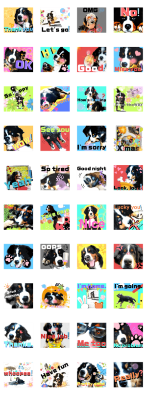【英語版】バーニーズの可愛い子犬時代 スタンプ情報