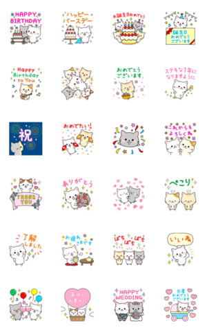お祝いの時にピッタリな特別感のあるスタンプです!猫達が可愛らしくて使いやすいです!