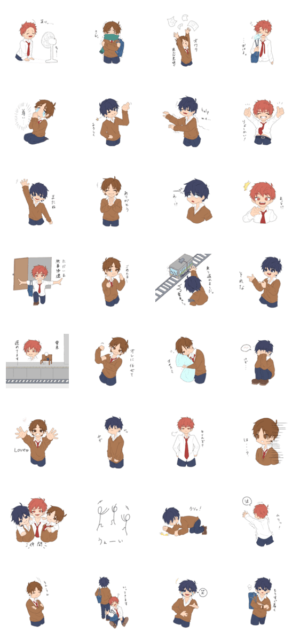 男子高校生3人の日常を描いたスタンプです。ash_blue より発売