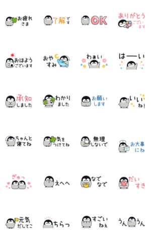 やさしく気づかいのできるペンギンの赤ちゃんたちの、すっきり見やすいちいさめの動くスタンプです♪