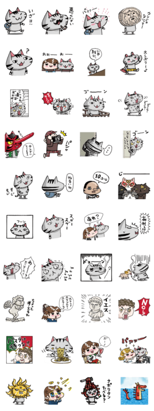 『ちびギャラリー』『旅ボン』シリーズ作者、ボンボヤージュのLINEスタンプ第5弾。今回は書籍『旅ボンイタリア編』から、変なリアクションとかを集めました。