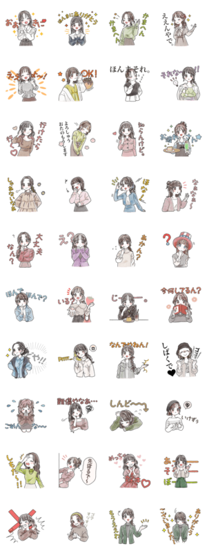 オシャレなふんわりかわいい女の子のスタンプです。使いやすい日常会話の関西弁バージョンです♪大阪/京都/兵庫/滋賀/和歌山/奈良
