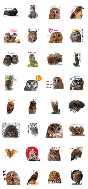 原宿・明治神宮前にある鷹やフクロウと遊べるお店「フクロウのお庭」のバードスタッフの可愛いスタンプ第一弾です。