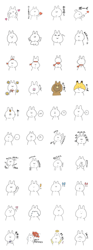 ゆるいあごが特徴なうさぎたちのスタンプです。普通の会話は使えなさそうな高度なスタンプたちばかりなので是非お試し下さい。