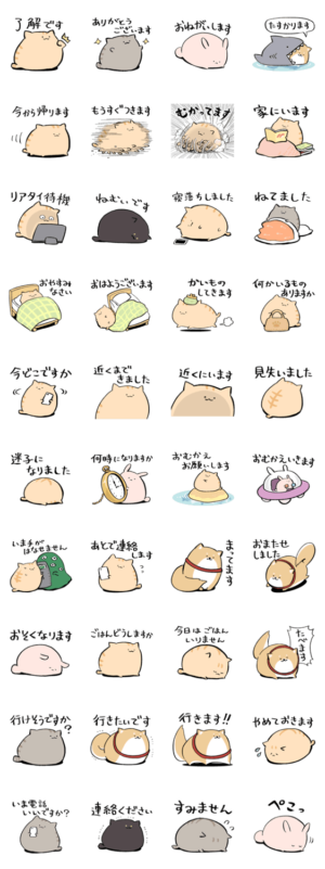 丸っこいネコのイラストがかわいい!そして、かゆい所に手が届く一言が素晴らしい。特に、「向かってます」の頑張ってる感が笑いを誘ったり「今起きました」などは少し寝坊してしまった時などにとても使いやすい。よく普段使いしています。