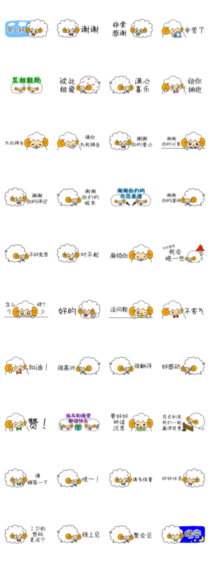省スペースのひつじのJwくん(中国語簡体字) スタンプ画像一覧
