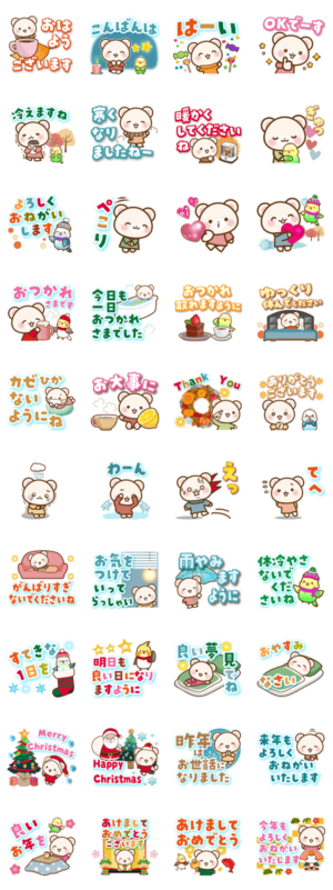 肌寒い季節にオススメ♪やさしい敬語と日常言葉がたくさん入ったスタンプです。クリスマスや年末年始、お正月の挨拶も入っていて便利です。