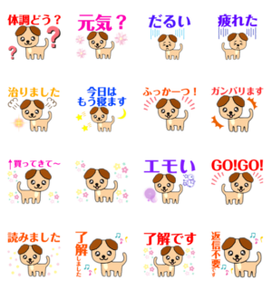 犬、イヌ、かわいい、了解、読みました、返信不要、だるい、疲れた、ガンバリます、治りました、ふっかーつ、GO、体調どう、元気、買ってきて、エモい、日常、普段