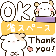 小さいサイズのぽっちゃりしたハムスターの省スペーススタンプです。毎日使える、よく使う言葉を添えました。