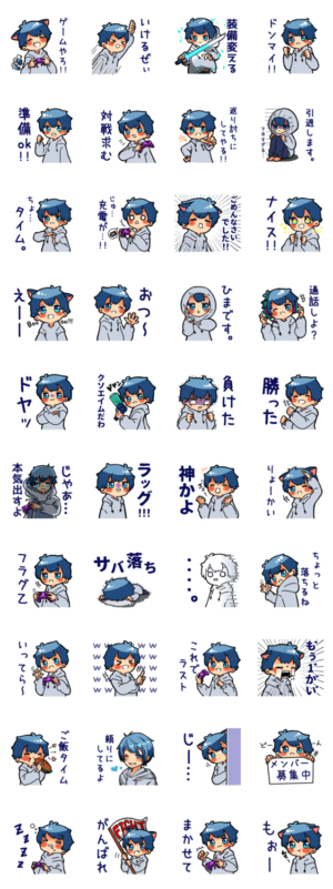 ゲームが大好きな犬系男子。ゲーム中でも簡単に返事ができるスタンプを作りました。ぬー より発売
