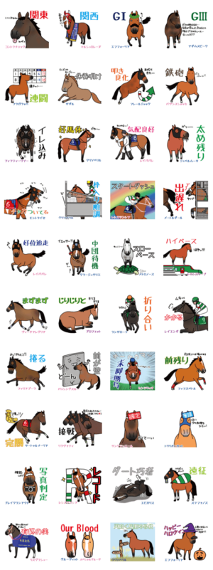 おがわじゅりの描く、キャロットクラブの馬たちのスタンプ~第4弾はGⅢ・JpnⅢ勝ち馬+未作成のGⅠ・JpnⅠ・GⅡ勝利馬たち!