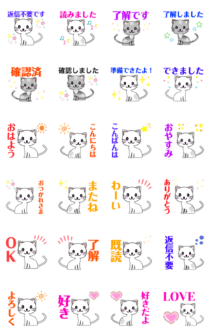 猫 既読/返信不要/了解/おはよう/あいさつのダウンロードはこちら↓