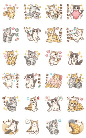 やさしい猫の『LINEスタンプの日記念』のポップアップスタンプです♪どこかで見たことがあるポーズをとった猫さんたちにクスッと笑顔になっていただけますと幸いです♪ちょびくろ より発売